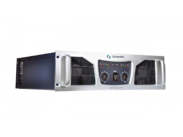 Potencia CONCERT C4800!!! Profesional 4800W!!! 2 x 2400 2 ohms, 2 x 1900W 4 ohms, 2 x 1200 8 ohms!!! Cuenta con un sistema de proteccion multiple integrado para sus altavoces!!! La unidad tiene dos ventiladores de velocidad dual para mantener autometicamente la temperatura de operacion interna adecuada!!! En el panel trasero tiene conexiones XLR de entrada y salida para linkeo de seƱal y conexiones speak on de salida!!!
